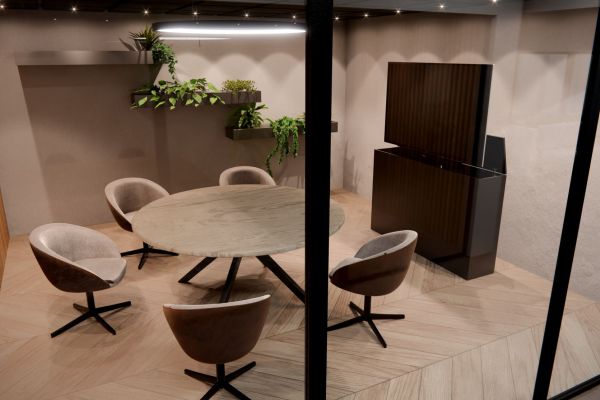 Elke vergadering wordt effectiever dankzij een groot, helder scherm dat eenvoudig verbinding maakt met laptops, tablets en smartphones. Dankzij de geïntegreerde TV-lift verdwijnt het scherm wanneer het niet in gebruik is, waardoor de ruimte netjes en multifunctioneel blijft. Samenwerken was nog nooit zo overzichtelijk.